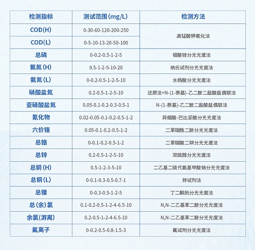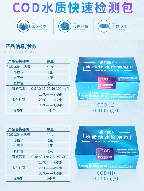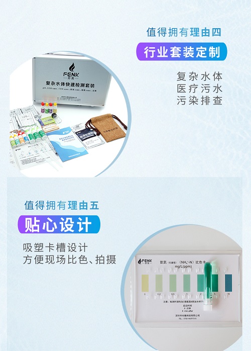 芬克檢測包包含氨氮快速測試包、工業(yè)污水COD總磷檢測、總余氯總銅鉻鎳鐵、